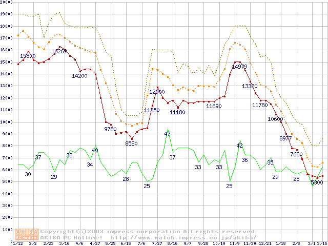 PC2100 DDR SDRAM 512MB(CL2.5)の価格推移