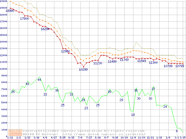 HDD主要製品の最安値推移