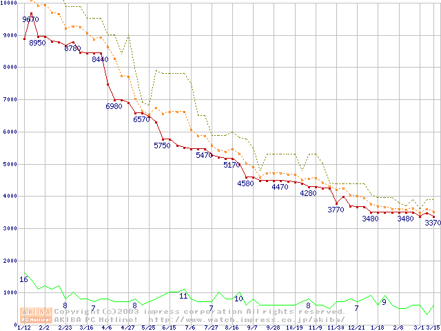 Socket A・FSB 200MHzの最安値推移