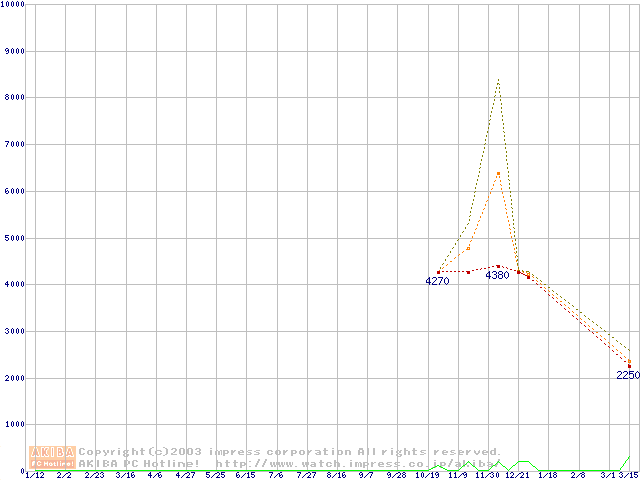 PC2700(DDR333) DDR SDRAM DIMMの最安値推移