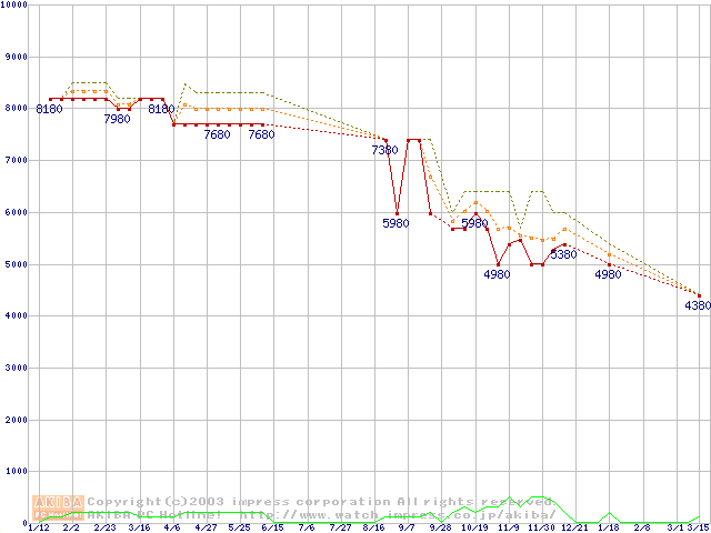 Socket 370 (PGA,FSB 133MHz,L2 64KB)の最安値推移