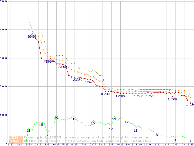 Socket A (OPGA,FSB 266MHz,L2 256KB,Palomino)の最安値推移