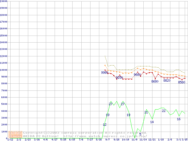 DiamondMax 16 (5400rpm,UltraATA/133,2MB,80GB/Platter,FDB)の最安値推移
