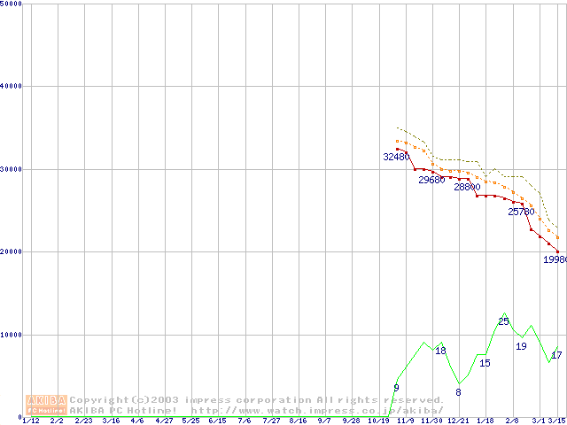 DiamondMax Plus 9 (7200rpm,8MB,UltraATA/133,FDB)の最安値推移