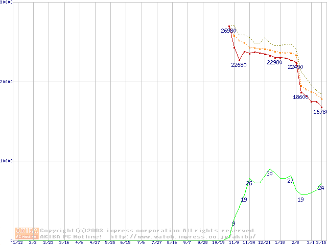 Socket A (OPGA,FSB 266MHz,L2 256KB,Thoroughbred)の最安値推移