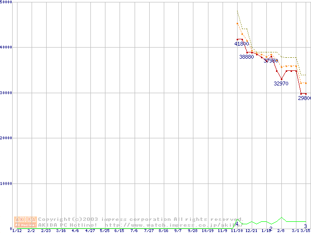 PC1066 DRDRAM RIMM4200(32bit)の最安値推移