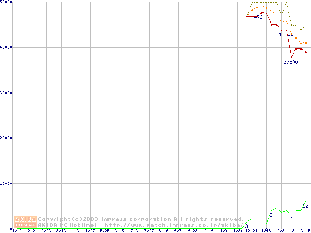 Socket 604 (micro-PGA,FSB 533MHz,L2 512KB,Prestonia)の最安値推移