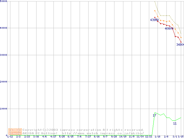 DiamondMax 16 (5400rpm,UltraATA/133,2MB,80GB/Platter,BB)の最安値推移