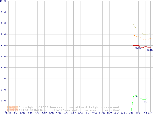 Socket A (OPGA,FSB 266MHz,L2 256KB,Thoroughbred)の最安値推移
