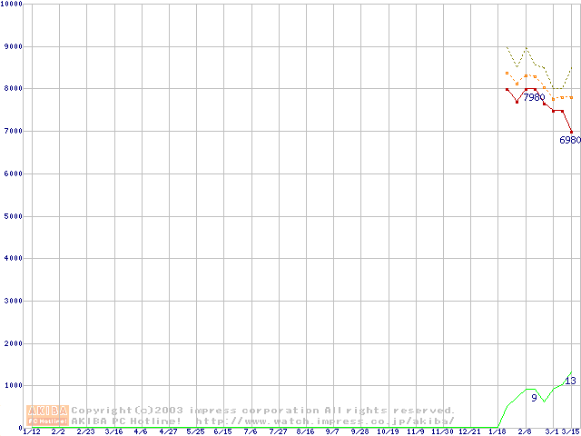 | Athlon XP 1800+ (1.53GHz) バルク(Thoroughbred)の価格推移 |