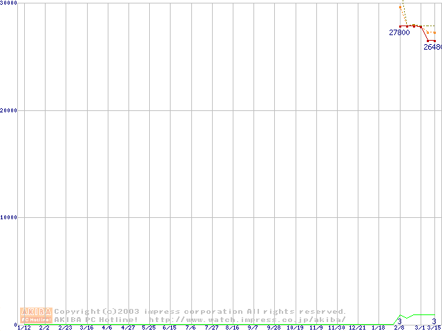 Socket 604 (micro-PGA,FSB 533MHz,L2 512KB,Prestonia)の最安値推移
