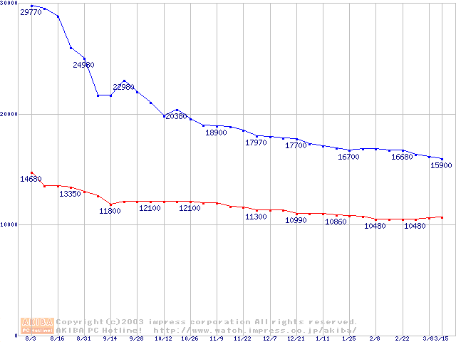 | [↑前グラフ]: | Jupitor (7200rpm,2MB,FDB,UltraATA/100)の最安値推移 |