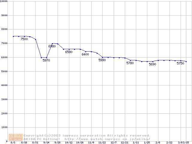 | [↓次グラフ]: | Socket A (PGA,FSB 200MHz,L2 256KB,Thunderbird)の最安値推移 |