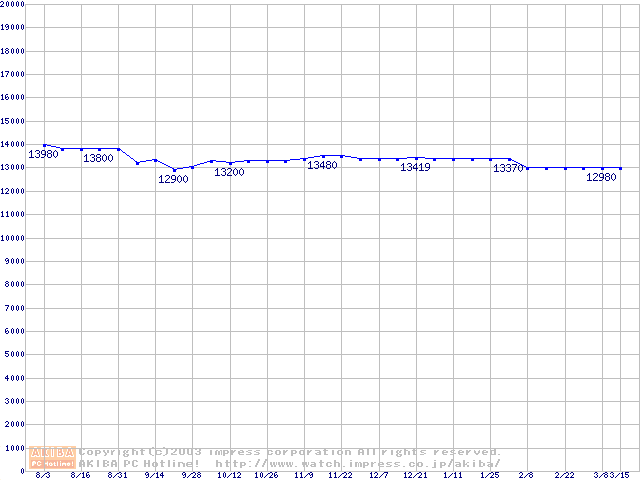 | [↓次グラフ]: | Socket 370 (FC-PGA,FSB 133MHz,L2 256KB,Coppermine)の最安値推移 |