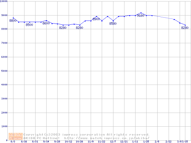 | [↑前グラフ]: | WD Caviar (7200rpm,UltraATA/100,2MB)の最安値推移 |