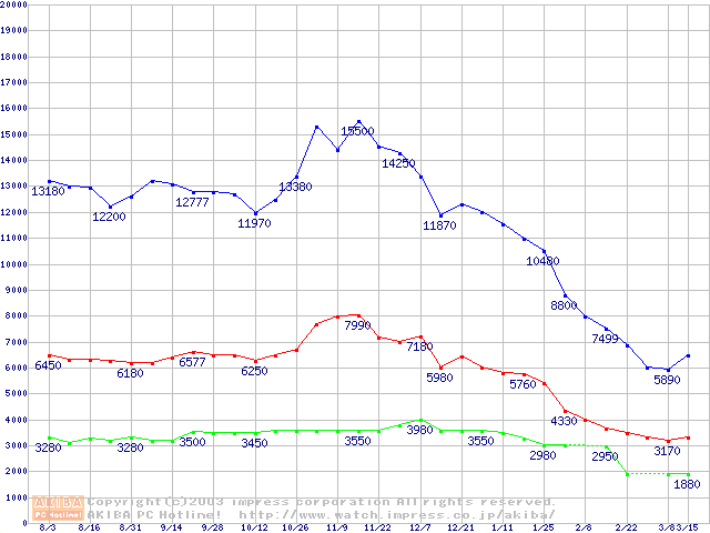 | [↑前グラフ]: | PC2100(DDR266) DDR SDRAM DIMM(CL 2.5)の最安値推移 |