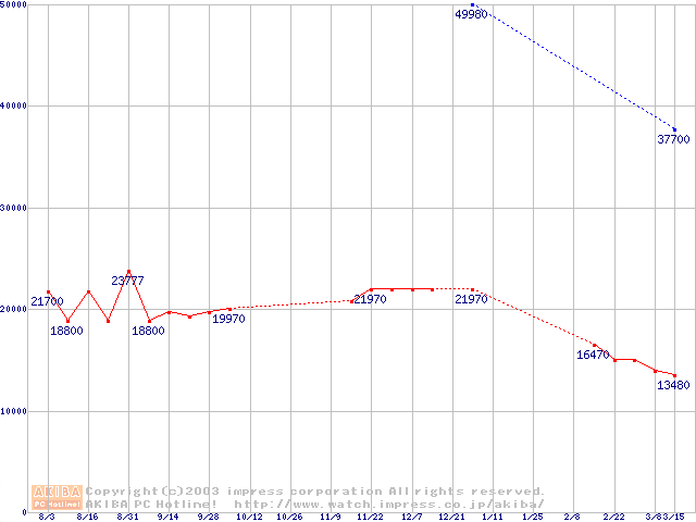 | [↓次グラフ]: | PC3200(DDR400) DDR SDRAM DIMMの最安値推移 |