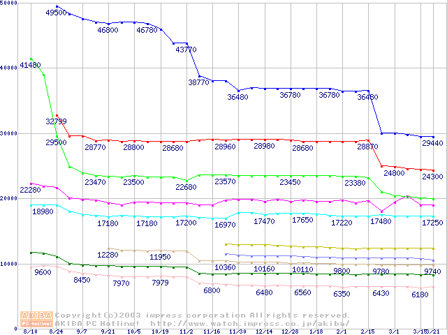 | [↓次グラフ]: | Socket 370・FSB 133MHzの最安値推移 |