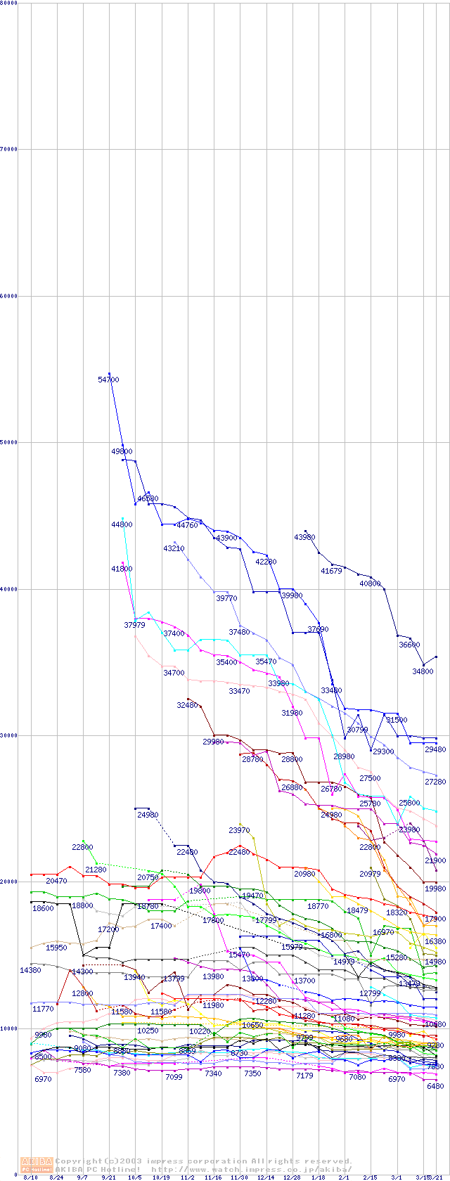HDD主要製品の最安値推移