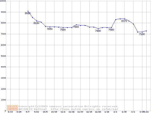 | [↓次グラフ]: | HDD 40GB~50GB未満(7200rpmクラス)の最安値推移 |