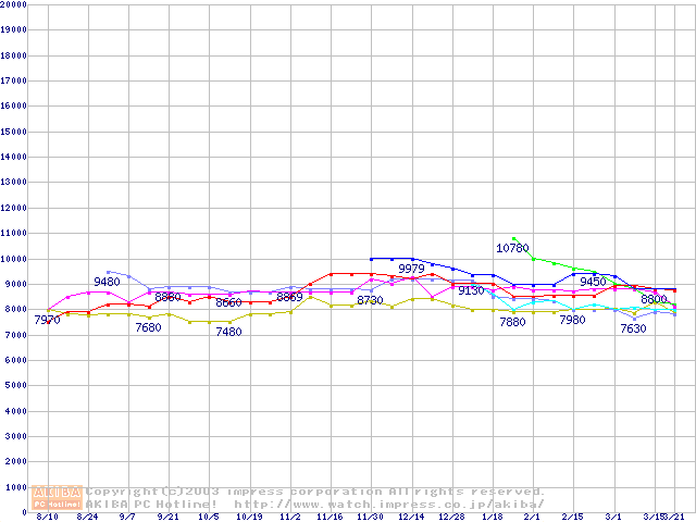 | [↓次グラフ]: | HDD 60GB~80GB未満(7200rpmクラス)の最安値推移 |