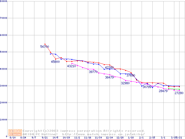 HDD 200GB以上(7200rpmクラス)の最安値推移