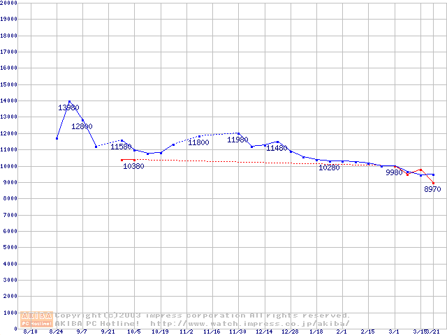 | [↓次グラフ]: | HDD 100GB以上(5400rpmクラス)の最安値推移 |