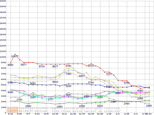 メモリ主要製品の最安値推移