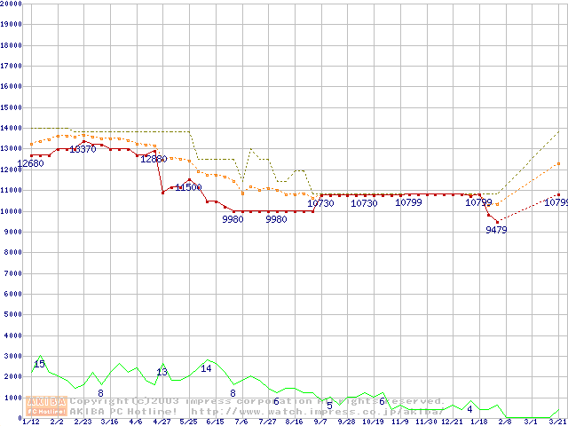 WD Caviar (5400rpm,UltraATA/100,2MB)の最安値推移