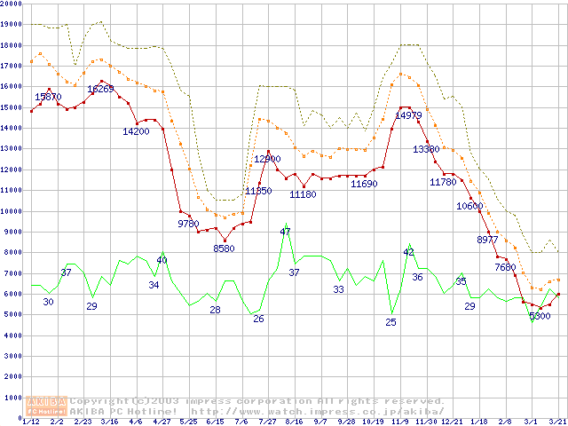 メモリ主要製品の最安値推移