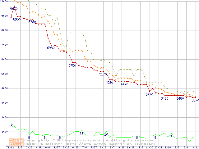 Socket A・FSB 200MHzの最安値推移