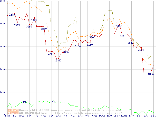 PC2100(DDR266) DDR SDRAM DIMM(CL 2.0)の最安値推移