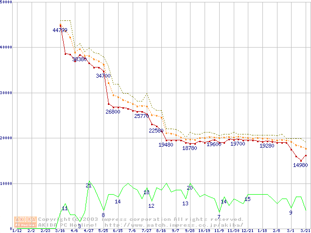 Athlon MP 2000+ (1.67GHz) リテールパッケージの価格推移