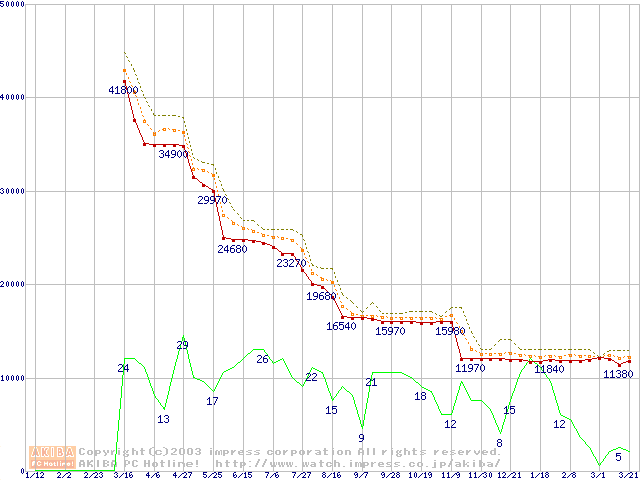 Athlon XP 2100+ (1.73GHz) リテールパッケージの価格推移