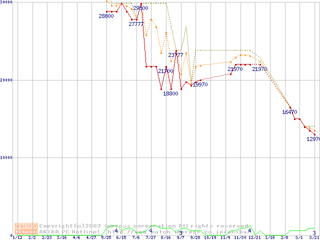 PC2700(DDR333) DDR SDRAM DIMM ECC対応 Registeredタイプの最安値推移