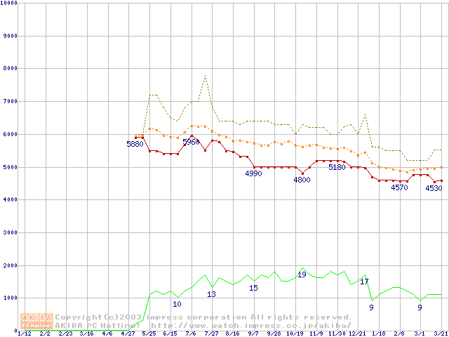 PC800-40 DRDRAM RIMMの最安値推移