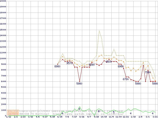 PC1066 DRDRAM RIMMの最安値推移