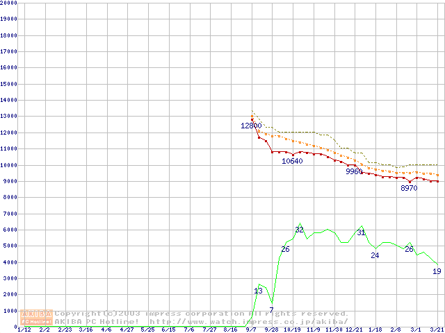 DiamondMax Plus 9 (7200rpm,2MB,UltraATA/133,FDB)の最安値推移