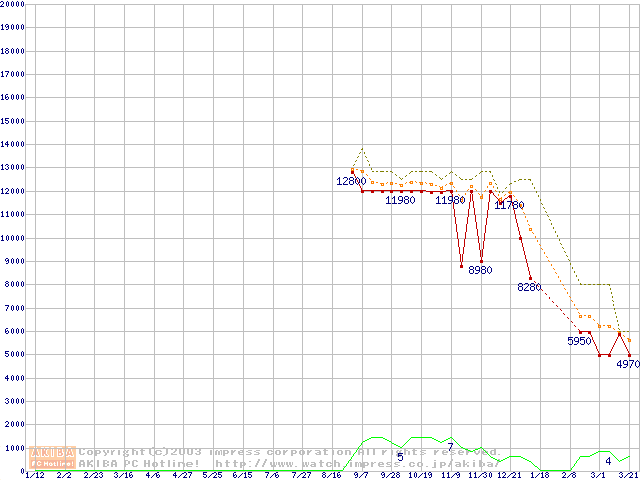 Socket A (OPGA,FSB 200MHz,L2 256KB)の最安値推移