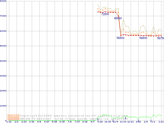 Socket 603 (micro-PGA,FSB 400MHz,L2 512KB,Prestonia)の最安値推移