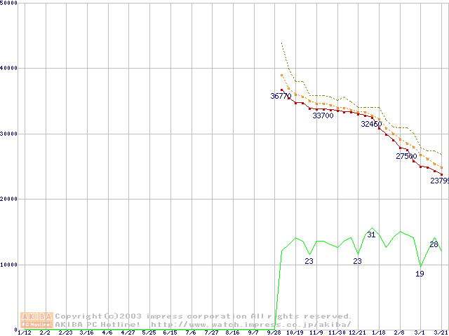 Deskstar 180GXP (7200rpm,8MB,UltraATA/100,FDB)の最安値推移