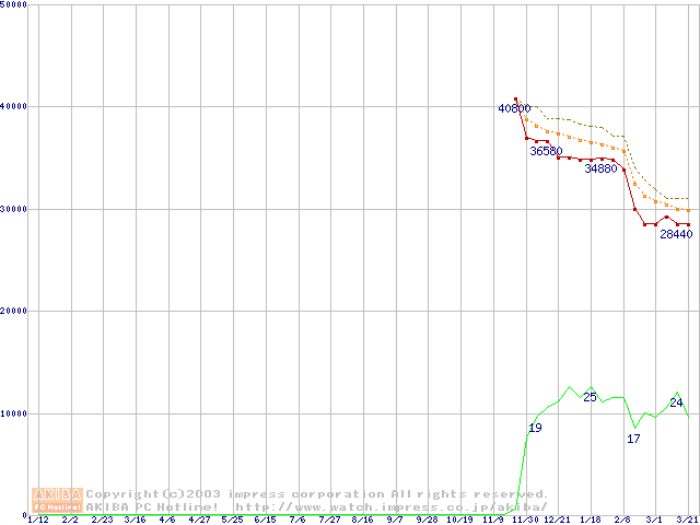 Athlon XP 2600+ (2.08GHz) リテールパッケージの価格推移