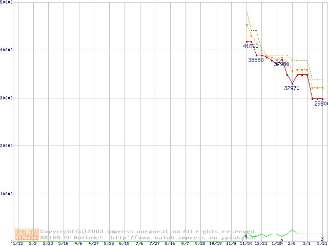 PC1066 DRDRAM RIMM4200(32bit)の最安値推移