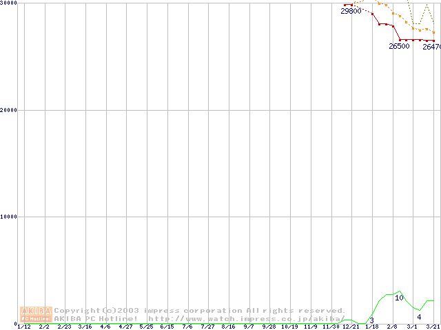 Socket 604 (micro-PGA,FSB 533MHz,L2 512KB,Prestonia)の最安値推移