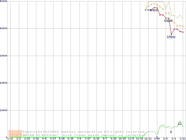 Socket 604 (micro-PGA,FSB 533MHz,L2 512KB,Prestonia)の最安値推移