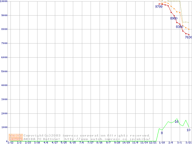 Barracuda 5400.1 (5400rpm,UltraATA/100,2MB,FDB)の最安値推移