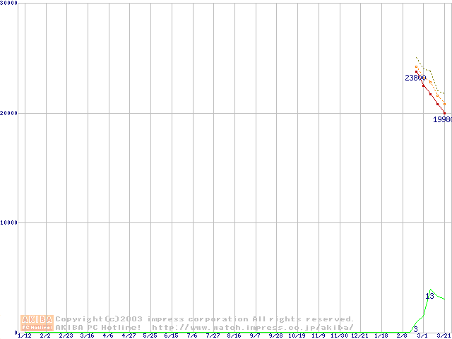 Socket A (OPGA,FSB 333MHz,L2 512KB,Barton)の最安値推移
