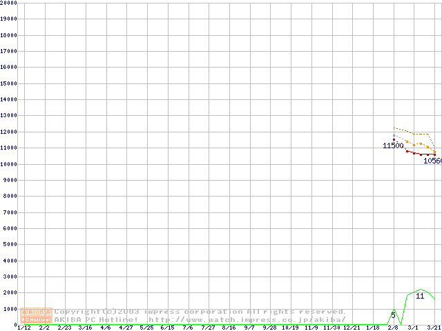 | Athlon XP 2100+ (1.73GHz) バルク(Thoroughbred)の価格推移 |
