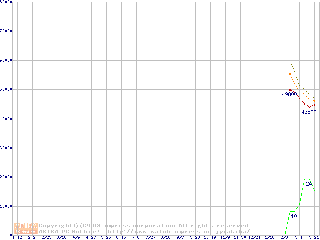 Socket A (OPGA,FSB 333MHz,L2 512KB,Barton)の最安値推移