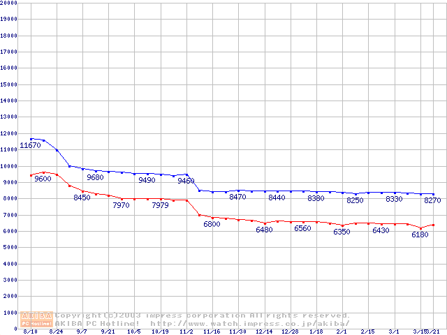 | [↓次グラフ]: | Socket 370 (FC-PGA2,FSB 133MHz,L2 512KB,Tualatin)の最安値推移 |